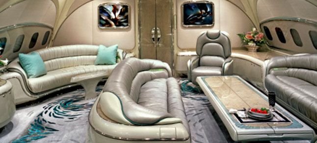 Konser salonu ve kuyruklu bir piyanosu bulunan uçaklara sahip olan Suudi Arabistan Prensi bin Talal’ın adeta küçük bir saray gibi görünen Boeing 747 model özel uçağında, kocaman bir yemek odası ve konforlu bir taht bulunuyor. Donald Trump’ın 2010 yılında satın alıp baştan tasarladığı 100 milyon dolarlık uçağında ise ileri teknoloji ses sistemiyle donatılmış bir sinema salonu ve altın musluklu bir banyo var. Jackie Chan’in isminin ve kişisel logosunun bulunduğu 14 kişilik özel jetinde ise ünlü oyuncunun Hollywood ünlülerinden oluşan arkadaş grubunun rahatlığı ön planda tutulmuş. Gleis’ın fotoğrafladığı diğer zengin lüks jetlerde de konser salonları, koyun derisinden pilot koltukları, şef mutfakları, saunalı ve jakuzili banyolar, akvaryumlar ve özel toplantı odaları bulunuyor.