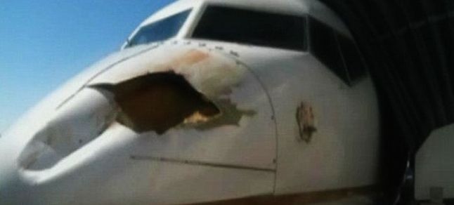 Amerikan Havayolları’na Boeing 737 tipi yolcu uçağına çarpan kuşlar uçağı tanınmaz hale getirdi.