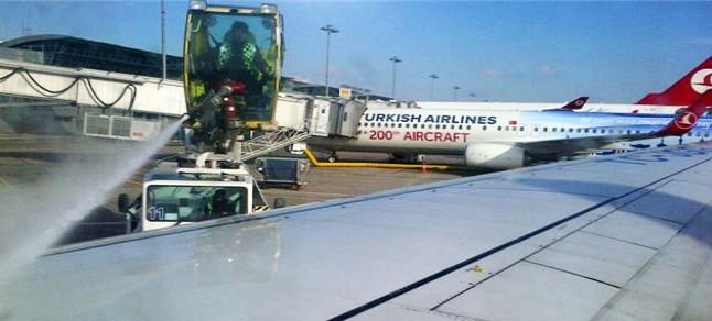 DHMİ’nin Atatürk Havalimanı Başmüdürü Celal Özuğur, havalimanında her hangi bir olumsuzluğun yaşanmadığını pistlerin iniş ve kalkışlara açık olduğunu söyledi. Özuğur uçakların buzlanmaya karşı Anti-icing ve De-icing işlemine tabi tutulduğunu belirtti. Atatürk Havalimanı’ndaki uçaklar sefer öncesi buzlanmaya karşı alkol ve glikoz karışımı bir sıvıyla yıkanıyor. Olası buzlanma tehlikesine karşı havayolu şirketlerinin uçakları ‘De-icing’ ve Anti-icing adı verilen buzlanmaya karşı alkolle yıkanıyor. Uçakların; kanat, motor, kuyruk ve gövdesi özel bir araçtan püskürtülen alkolle buzlanmaya karşı korunuyor.