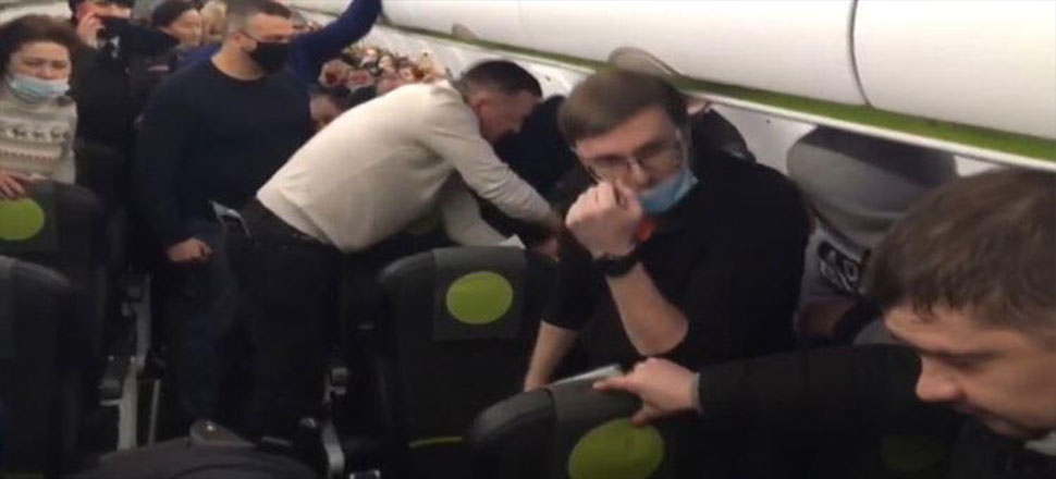 Rusya’nın Novosibirsk kentinden başkent Moskova’ya sefer yapmak üzere havaalanında bekleyen yolcu uçağındaki iki alkollü yolcu, diğer yolculara hakaret etmeye ve rahatsız vermeye başladı.