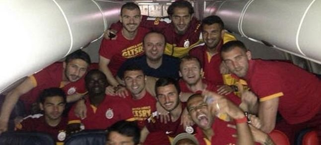 Gaziantep’ten İstanbul’a yapılan uçak yolculuğunda kameraların karşısına geçip adeta zafer pozu veren Galatasaraylı futbolculardan Burak Yılmaz ve Selçuk İnan, bu kareyi kişisel twitter hesapları aracılığıyla takipçileriyle paylaşmayı ihmal etmedi.
