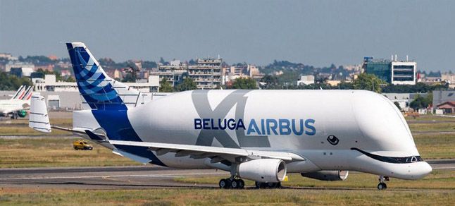 Airbus çalışanları ve alt yüklenicilerin oluşturduğu 10 bin kişinin izlediği ilk uçuş başarıyla tamamlandı. Airbus’ın uçağa ismini aldığı beluga balinasına benzemesi için göz ve ağız da eklediği görüldü.