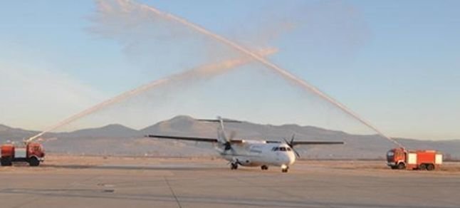 Bora Jet’le yapılan görüşmelerin ardından ilk uçak 20 yolcusuyla bugün saat 07.40’ta, Uşak Havalimanı’na indi. Uçak havacılıkta ‘Su takı seremonisi’ denilen törenle karşılandı. Uçak, piste indikten sonra arazözlerin püskürttüğü suların altından geçti.