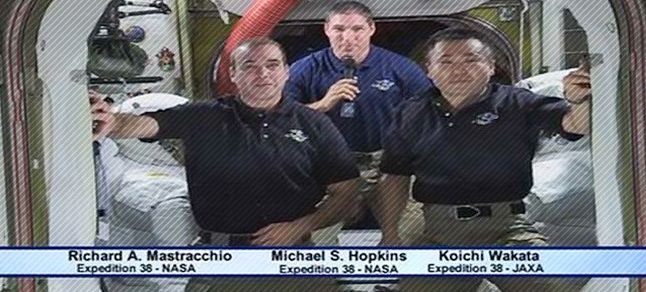 Hopkins ve JAXA astronotu Koichi Wakata’nın tebrik mesajlarıyla Gravity filmini bir kez daha kutladı. İlk olarak Mastracchio film ekibini kutlarken mikrofonu diğer arkadaşına doğru fırlatarak ‘gerçek yerçekimini’ gösterdi. Daha sonra mikrofonu alan Wakata ve Hopkins’in tebrik mesajları sırasındaysa ilk konuşan astronot Mastracchio’nun durduğu yerde takla atması izleyenlere neşeli dakikalar yaşattı.