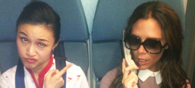 İngiliz futbolcu David Beckham’ın eşi şarkıcı Victoria Beckham Çin uçuşu sırasında hostes koltuğuna oturarak fotoğraf çektirdi.