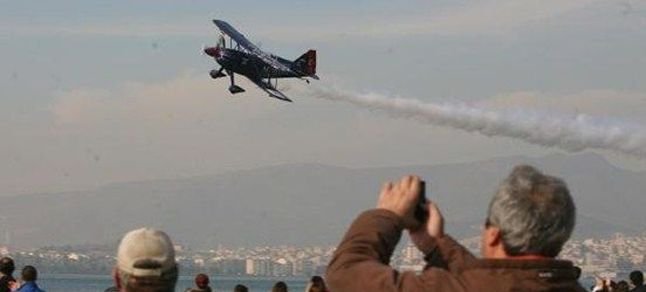 Açılışta milli akrobasi pilotu Ali İsmet Öztürk’ün şovunu kaçırmak istemeyen yüzlerce İzmirli, Gündoğdu Meydanı ve Kordon’a akın etti. Paraşüt ve model uçakların gösterisinin ardından körfezin üzerinde Öztürk, ‘Mor Menekşe’ adını verdiği uçağı ile akrobasi gösterilerine başladı. Ali İsmet Öztürk, uçağı ile gökyüzünde bir yılan gibi uçağı ile kıvrılarak bazen bir insan silueti yarattı, kalpler çizdi. İzmirliler ellerinde kamera ve cep telefonları ile gösteriyi görüntülemeye çalıştı.