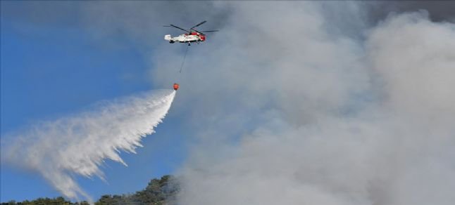 Kastamonu’daki yangına helikopterlerle müdahale ediliyor. Yangın söndürme helikopterleri Sinop’tan aldıkları suyu alevlerin üzerine boşaltıyor.