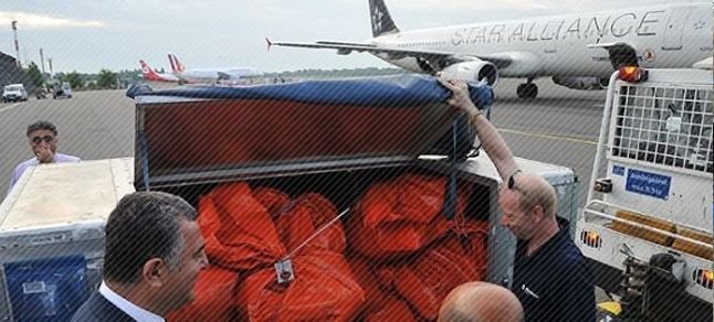Uçağa Berlin’den 36, Hannover kentinden 44 turuncu torba yüklendi.